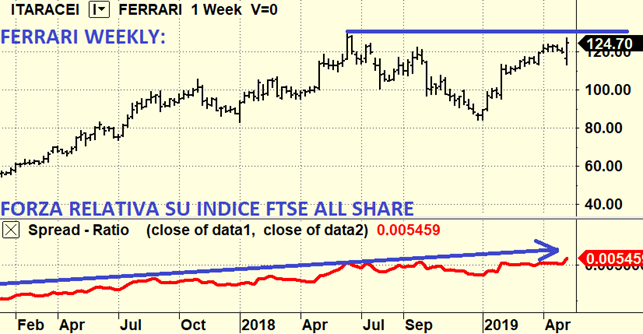 Un esempio classico è Ferrari, che non ha subito per niente del ribasso ed anzi è tornata sui massimi storici. Domandina semplice semplice: se il mercato ritraccia e un titolo ha il fiato per tornare sui massimi (ovvero mentre tutti vendono tutto c’è la maggioranza degli operatori che compra quel titolo) secondo voi quel titolo è buono da comprare oppure no ? Io direi che è buono come il pane …