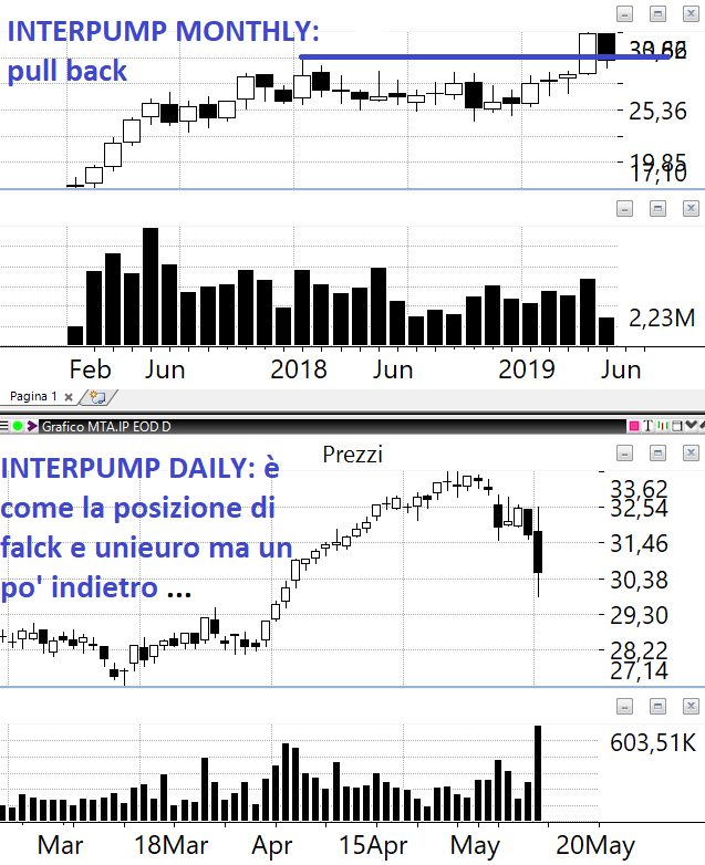 INTERPUMP: stesso discorso di qui sopra, tanto più che la trimestrale è stata d’oro. Non appena rialza la testa la impalliniamo.