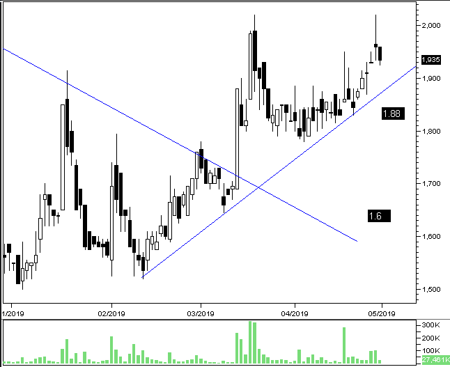 Una eventuale area di ingresso comoda può essere individuata in area 1.88€ , valida in caso di bassi volumi di contrattazione, altrimenti verrà richiesta un'azione più incisiva entrando alla rottura dei 2 €.