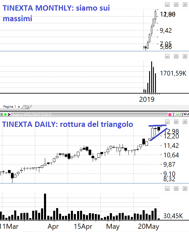 TINEXTA: sarebbe da comprare ma francamente il pattern è già mezzo andato e quindi stiamo fermi. Però per i lettori più arditi questa è una opportunità perché una botta all’insù la dovrebbe fare. E forse sarebbe meglio comprarla vicino al supporto della congestione piuttosto che sui massimi