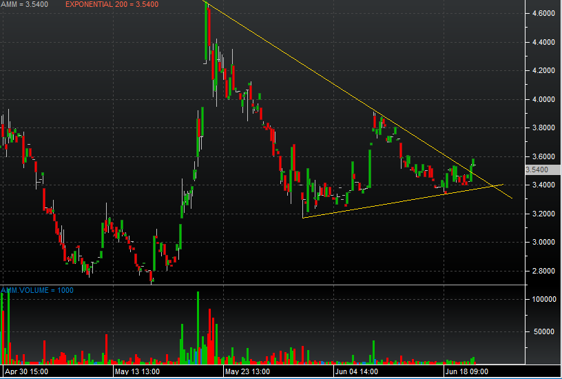In questo caso, la media mobile naviga sui 5.90€ e due possibili punti di ingresso sono ben visibili in area 5.7€ e , per i piu arditi, ai quali faccio l'appello di stare attenti a stop loss stretti e soprattutto all'intonazione generale del segmento AIM, in area 5.90€, target price 6.65€.