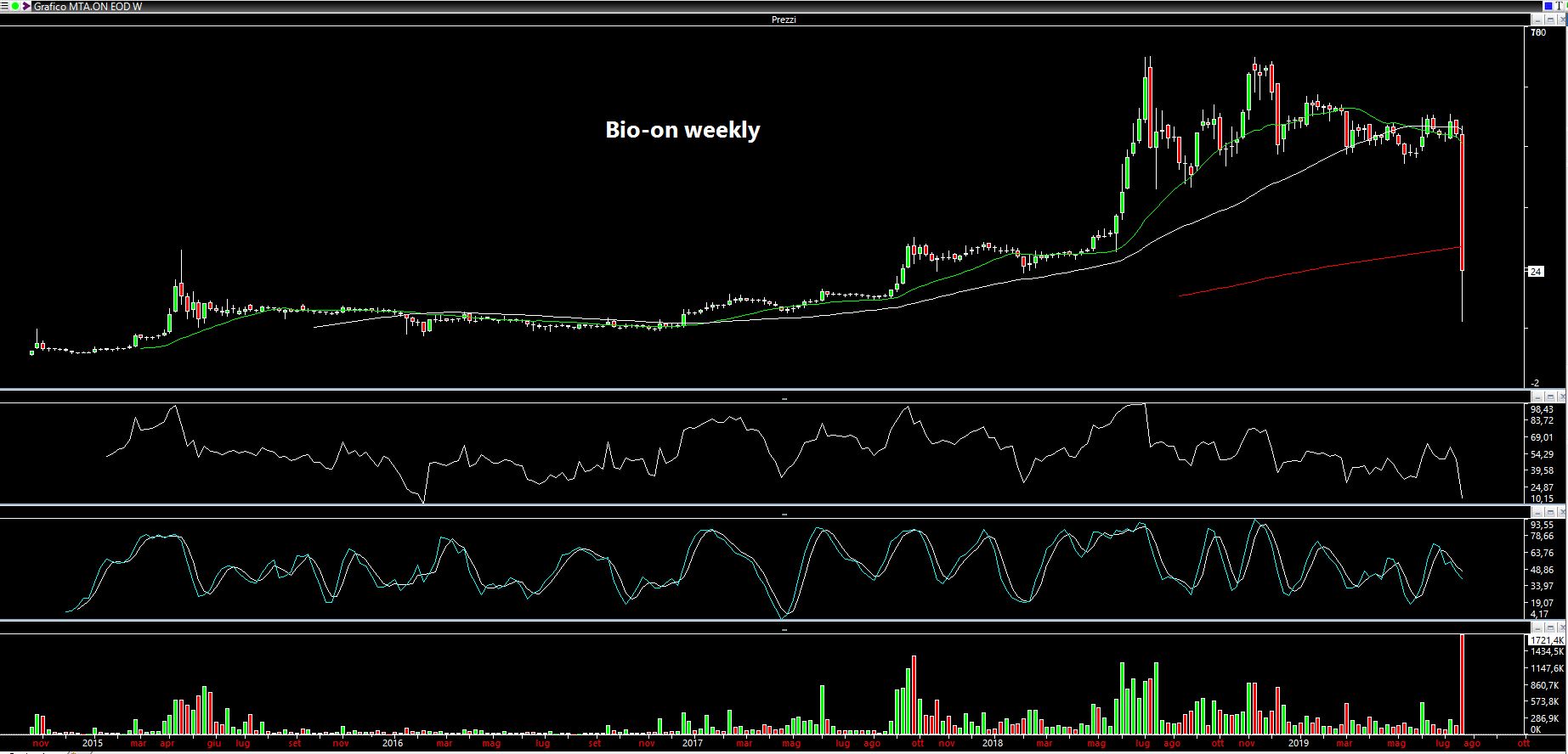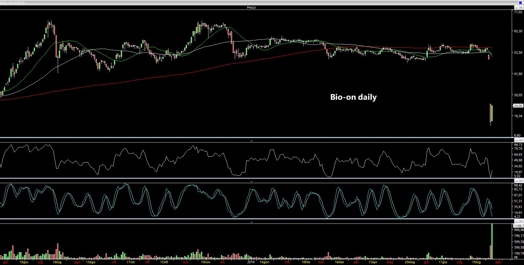 Torniamo al punto di partenza. Se le contrattazioni sul titolo Bio-on fossero avvenute a parametri allargati, non si sarebbe ingenerato tutto il panico ed il titolo sarebbe sì sceso ma progressivamente. La riprova di quanto scrivo sta nel fatto che nella giornata di mercoledì il titolo ha cercato di chiudere a 28 euro (circa -50% rispetto ai 55 euro del giorno precedente). Non avendo fatto asta però si è ingenerato ancora più panico. Morale: Giovedì mattina l'open è stato a 24.80 euro, quindi un ulteriore -10 % rispetto al tentativo di asta del giorno precedente.