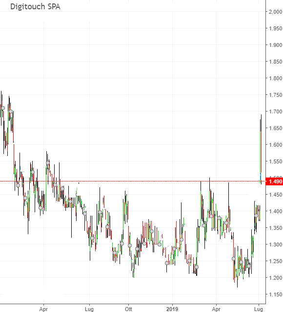 I titoli che hanno dato una bella prova tecnica sono stati Banca Ifis, Fineco Bank, oltre tutte le altre banche e tornando a listino AIM andremo a vedere la situazione grafica di Digotouch.