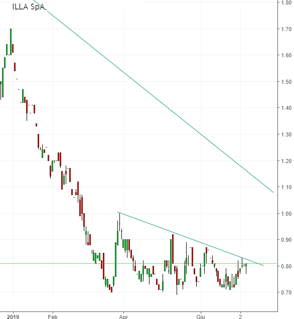 La rottura, se avvenisse, dei 0,82€ con volumi decenti, aprirebbe lo spazio ad un rimbalzo che può essere sfruttato sino a 1€-1.10€.