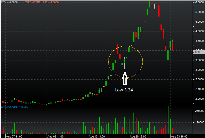 Nel trading, spesso ci vuole fortuna, e questa è passata davanti ai nostri occhi nel momento in cui il titolo proseguiva a colpi di sospensioni al ribasso, finchè ha trovato il suo fondo sul valore preciso di 3.24€ per azione.