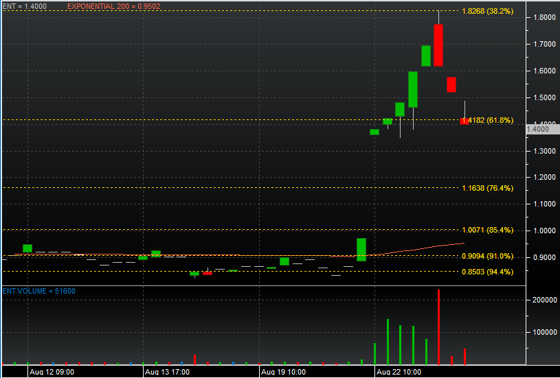 Dopo un'apertura record che ha superato un rialzo del 50%, roba da Nasdaq... ha ripiegato sul 61,8% di Fibonacci che ha tamponato la sua discesa.