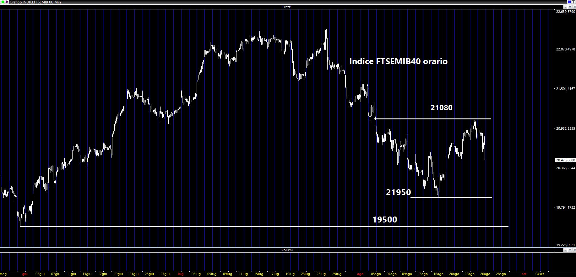 In circostanze come queste non è naturalmente semplice operare e come ho scritto nell'incipit di questo articolo la riprova è nella seduta di ieri, venerdì 23 Agosto. Alla notizia di dazi da parte della Cina il mercato è sceso, poi Powell, presidente della Fed, ha rassicurato i mercati ed alla fine l'ennesimo tweet di Trump ha dato il colpo finale.
