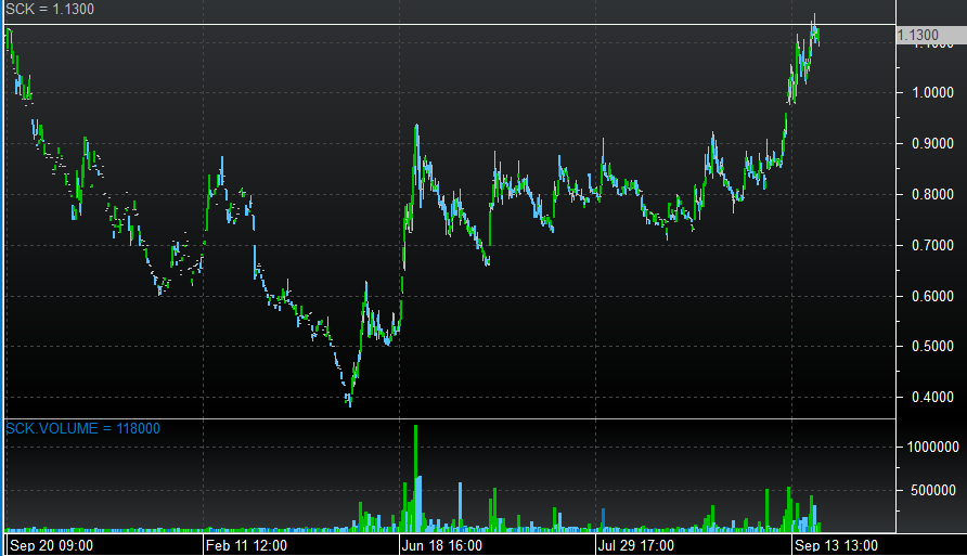 Qui in basso, il grafico di SCIUKER FRAMES con il momentaneo target sugli 1.15€, conseguito.