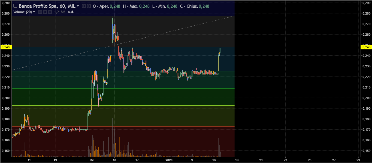 In intraday, possibile rientro entro l'area 0.23€, o meglio, più che possibile, un auspicio.