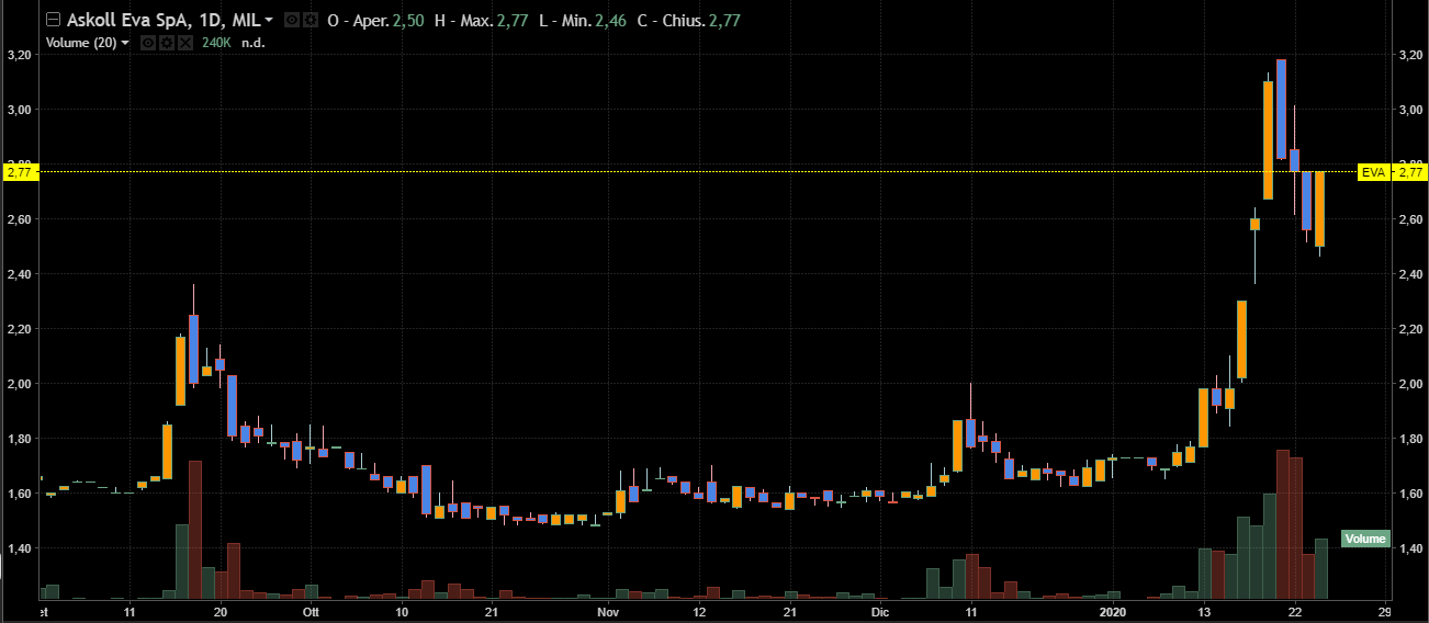 Azione che ha dato il via all'estate dell'Aim, agli inizi del giugno 2019, tornata d'interesse nel finale di questa settimana, come ben visibile in questo screenshot daily.