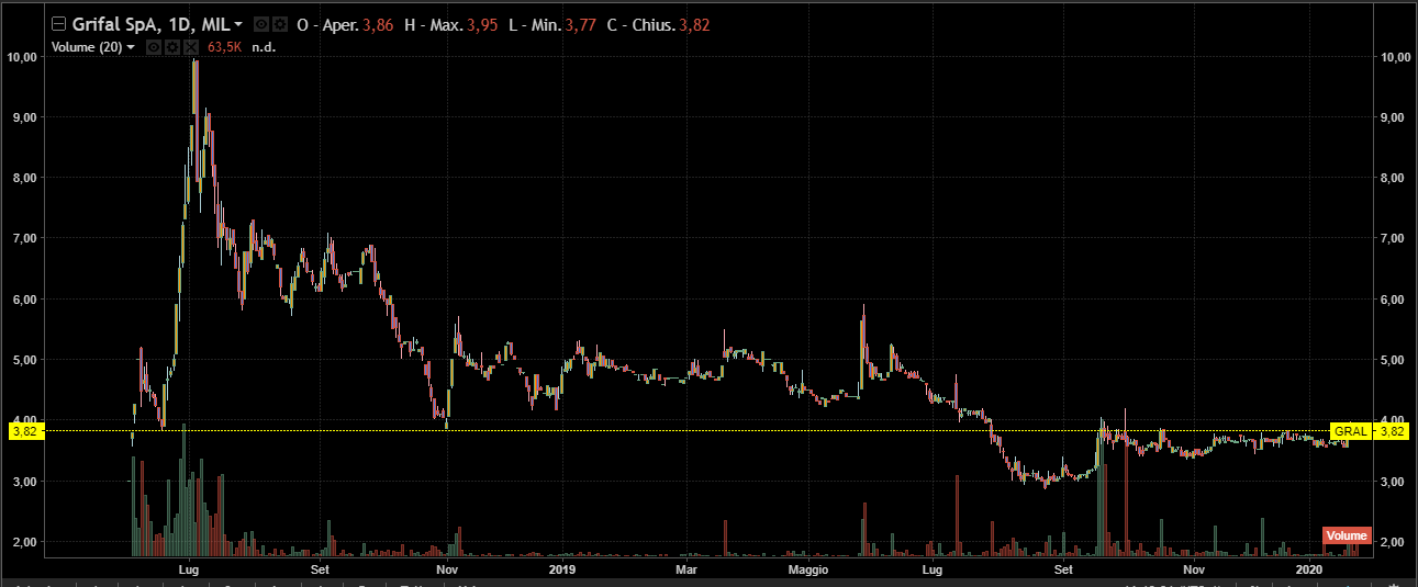 Considerando quanto appena detto, andiamo ad analizzare la situazione grafica di un'azione che stanzia su di un fondale fangoso da diverso tempo, e, memori delle vicende analoghe accadute a molti altri titoli dell'Aim, studieremo graficamente la situazione di Grifal.