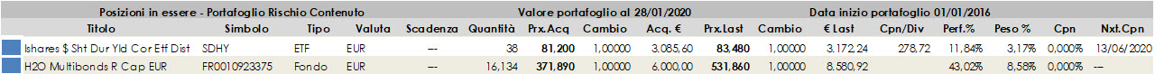 Tutto questo per dire cosa? Semplice: fare il punto della situazione del nostro portafoglio Rischio Contenuto, che a dispetto del nome ha chiuso il 2019 con un rendimento spettacolare e che ha in pancia titoli che si sono rivalutati a doppia cifra percentuale.