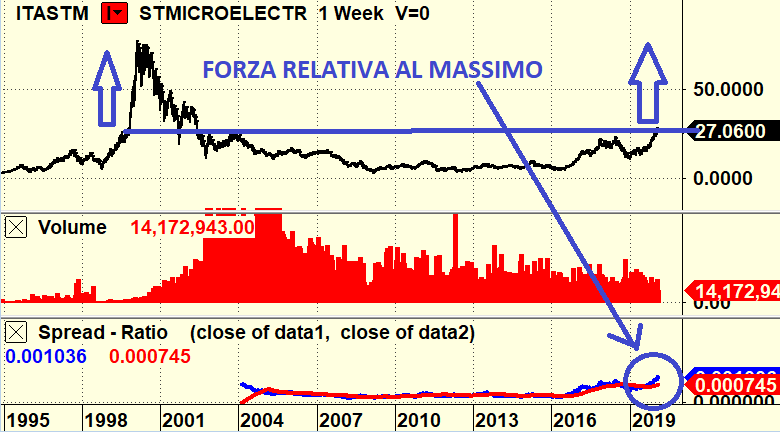STM: avevo solennemente promesso ad un mio socio che non avrei mai più comprato STM perché abbiamo preso diversi stop uno dopo l’altro e ancora ci lecchiamo le ferite. Ma c’è un ma. Tutti gli istituzionali che seguono STM stanno continuamente aumentando i target price e sulla stampa USA si parla sempre più di nuova stagione per i microchips. Eppoi se guardate il grafico di STM noterete che siamo sulla vetta: se continua così rompe le ultime resistenze e sopra abbiamo il movimento speculativo dopo un accumulo di 20 anni. Roba da odissea nello spazio. E quindi rompiamo la promessa con il socio e piazziamo il buy: COMPRIAMO BUY 27.87 STOP