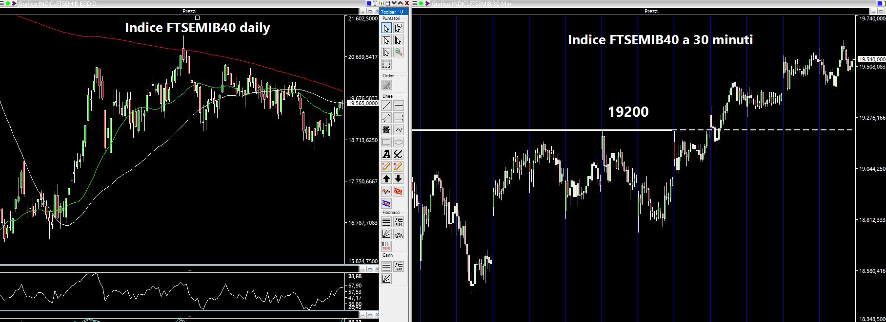 Buon sabato a tutti. Ci eravamo salutati con un indice FTSEMIB40 che si trovava in questa situazione: