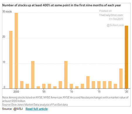 Se consideriamo le azioni USA che nei primi 9 mesi dell’anno hanno fatto almeno il 400% siamo ad un numero che abbiamo visto solo nel 2000 … e questo per dirvi che non è finita qui non può finire qui …