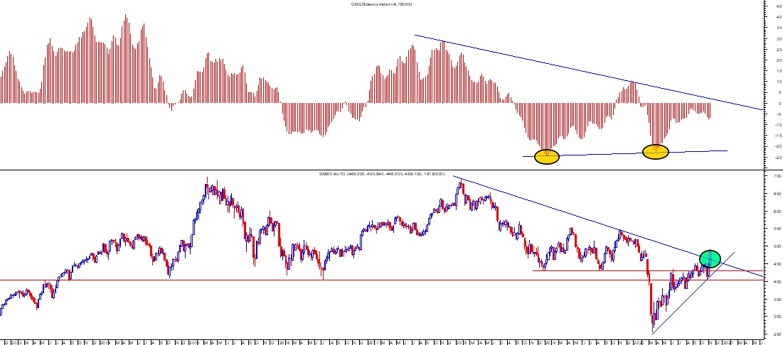 Inoltre, l’Efficiency index, che non è tuttavia oro colato, proviene dai valori sotto -15% che, solitamente, hanno preceduto storicamente importanti rialzi; eccezione fatta per l’inizio del 2019.