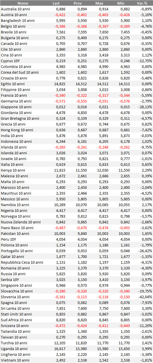 Bond Governativi Mndo Weekly Ranking
