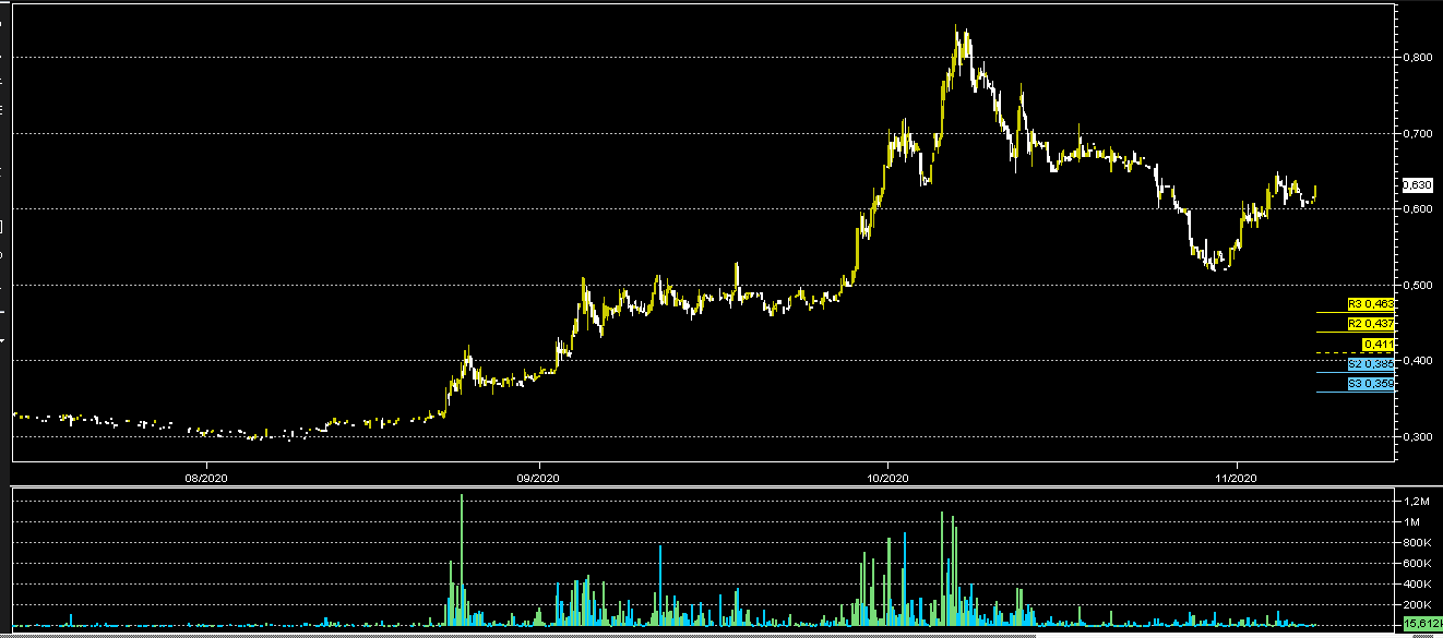 La tenuta del livello di 0.608€ è stata importante per confermare il trend, pertanto per chi non le avesse in portafoglio, questo è un punto al quale è possibile ipotizzare un'entrata con stop loss corto al di sotto di tale livello perchè, appunto si invertirebbe il trend, pertanto un piccolo stop offrirebbe successivamente la possibilità di rientrare ai 0.54€, altro valore importantissimo e solido.
