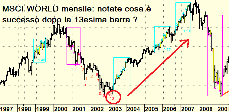 Vediamo un esempio “spettacolare di funzionamento”: nel 2003 il Sequential sul mensile dell’indice MSCI world ha segnato il punto di minimo.