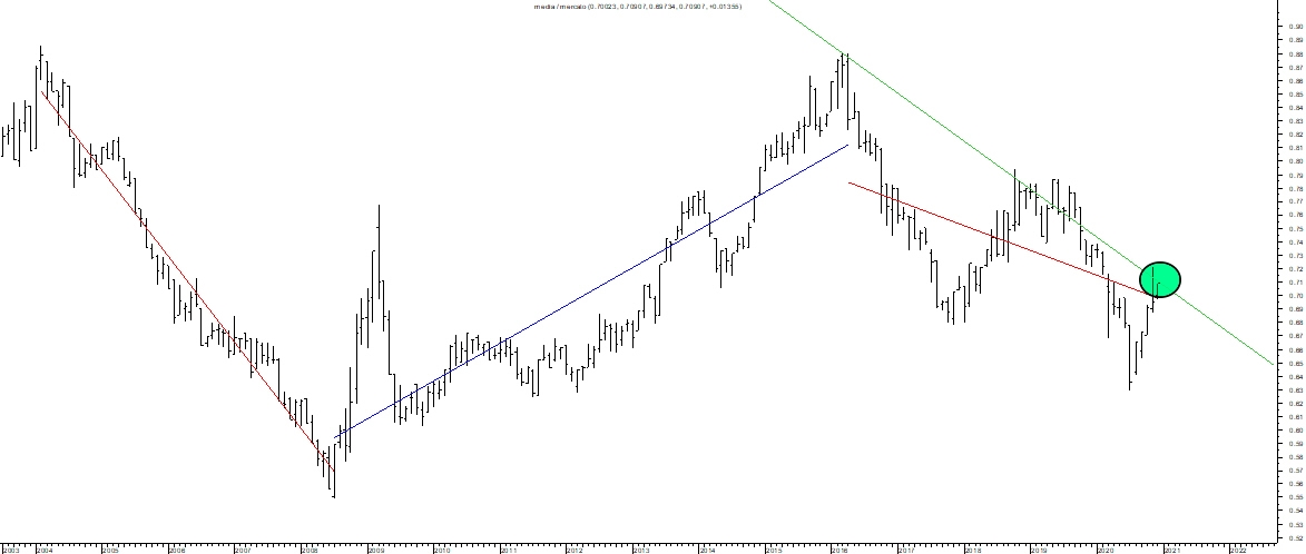 Attenzione tuttavia alla tenuta dell’area di supporto di 260/50 interessata anche da una lunga serie di minimi relativi realizzati negli anni 2016/2019.