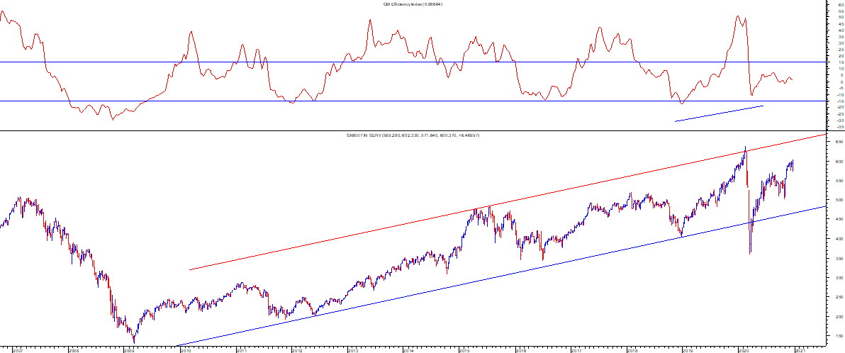 L’indice Stoxx Europe 600 Financial Services è individuato dal 2009 all’interno di un contesto rialzista che ha portato, proprio durante lo scorso mese di febbraio, alla realizzazione di un massimo storico.