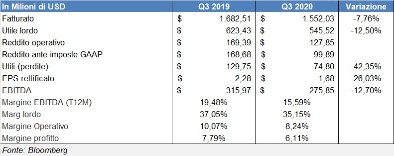 Il Q3 2020 ha riportato un EPS di $ 1,68 è sceso da $ 2,28 rispetto ad un anno fa. Tale risultato ha sorpreso il consensus degli analisti che prevedeva un utile pari a $ 1,49 per azione.