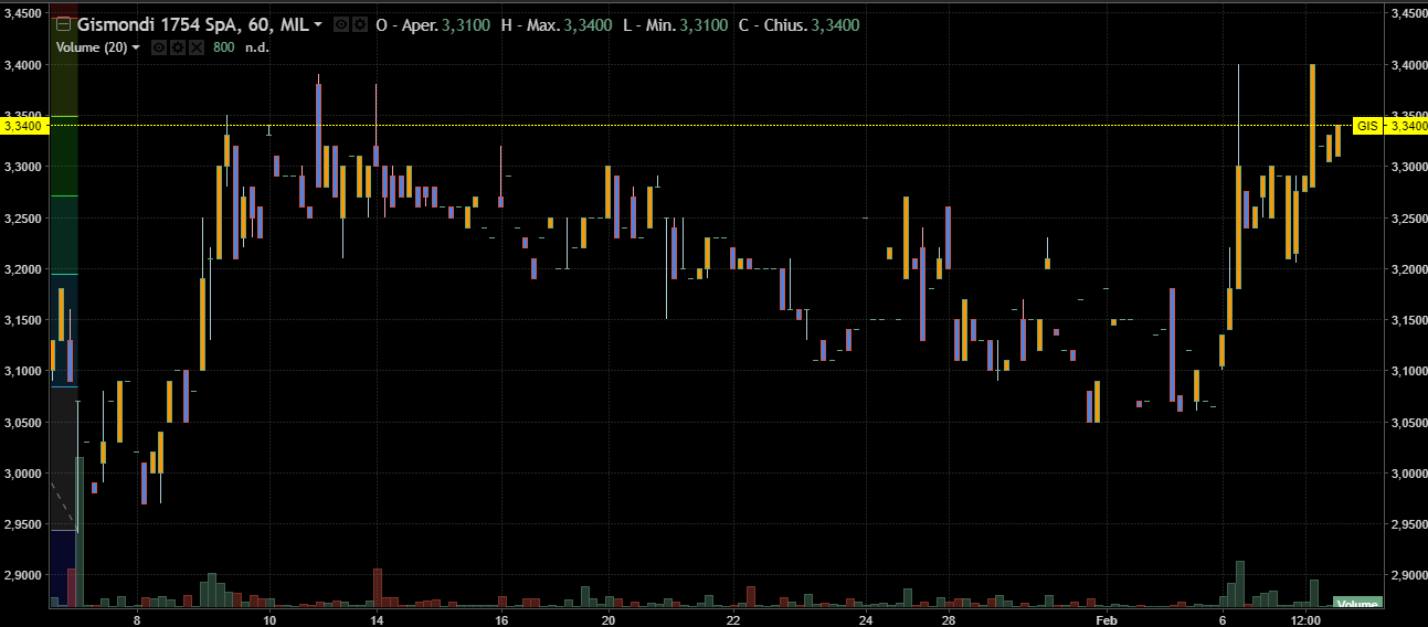 Target price ai massimi storici per questa azione del segmento Aim Italia, al valore di 3.6€.
