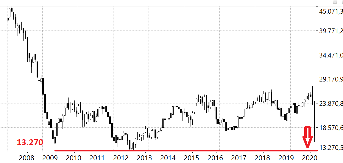La seconda cosa è che siamo arrivati di nuovo e in poco meno di un mese vicino al minimo di 13.270 del Ftse All Share che corrisponde sul lungo periodo (MIB STORICO) al punto mediano del nostro mercato e quindi il meccanismo della pallina da ping pong si può invertire di nuovo.