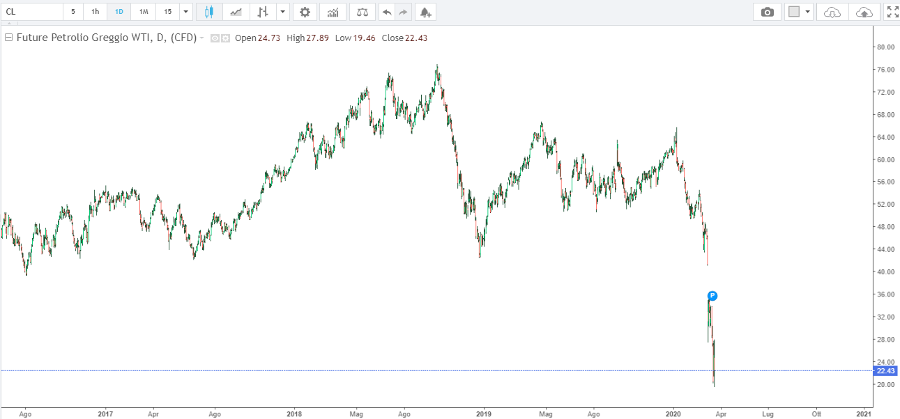 Più di ogni indicatore, il petrolio ha definitvamente certificato le previsioni di un arresto imminente di molte attività produttive, scivolando abbondantemente anche sotto i 25 $ a barile.