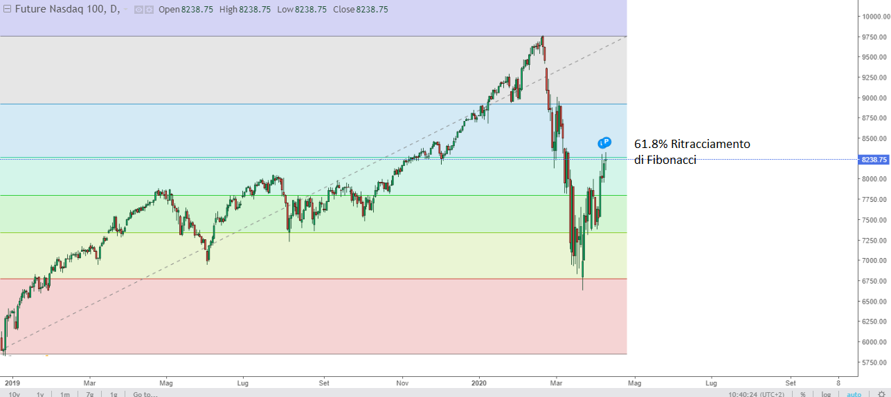 Ci si può, ad esempio, affidare al ritracciamento di Fibonacci, notando così come, non solo gl'indici mondiali, ma anche le azioni facenti parte di questi panieri, abbiano tutti rispettato il valore di possibile inversione di trend, fermandosi ad una soglia prossima al 61.8% .