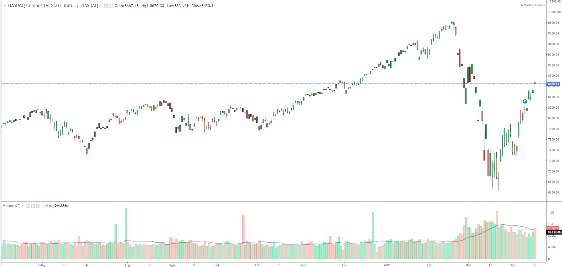 In base a questa giusta constatazione, aggiungendo la pioggia di liquidità immessa nel mercato, è in qualche modo, giustificabile la grande risalita del Nasdaq Composite, paniere per eccellenza del settore tecnologico.