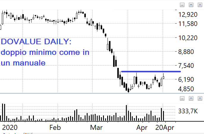 Però questa azione DOVALUE ha una marginalità del 37% nel 2019 e sta disegnando un doppio minimo da manuale e ha anche controvalori che sono interessanti e passibili di un buy.