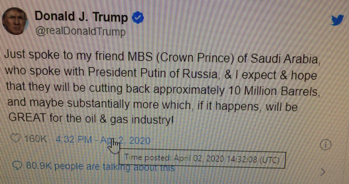 Peccato poi che in serata su molti organi di informazione sia uscita la parziale smentita da parte del Cremlino del colloquio tra Putin ed il principe saudita (https://www.askanews.it/economia/2020/04/02/wall-street-chiude-in-rialzo-con-balzo-petrolio-dow-jones-224-pn_20200402_00399/)
