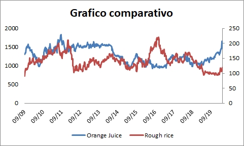 Pertanto, in certe circostanze (perché non siamo in una situazione di correlazione inversa), è possibile andare long di orange juice e short di rough rice, e viceversa.
