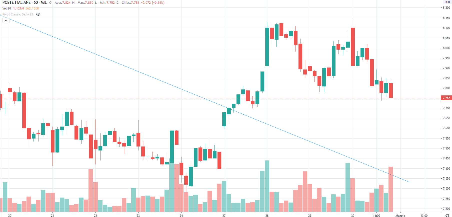 Il livello raggiunto per più ore di contrattazione è stato 8.14€, salvo poi ripiegare, segno inequivocabile che non c'era forza sufficiente per andare oltre.