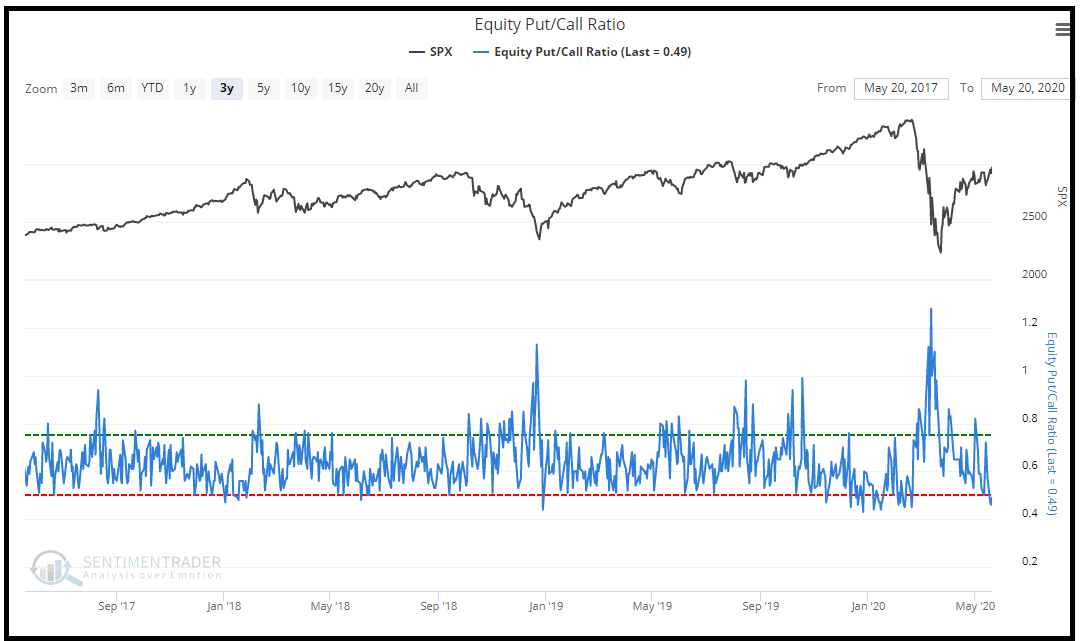 I tre principali indici azionari USA hanno aperto la settimana delle contrattazioni in gap up mostrando un bel segnale di forza, poi durante la settimana gli scenari hanno confermato che i tre indici vanno ad una la velocità diversa, cosa che accade da diverse settimane. Di certo c’è che fin quando il sentimento ed il posizionamento dei grandi istituzionali, tra i quali anche i fondi discrezionali, è basso il mercato non verrà giù. Qualcosa sta cambiando a livello di mercato dei derivati nel quale, negli ultimi giorni, le opzioni call acquistate sono il doppio delle opzioni put acquistate, quindi sembra che gli investitori si stiano posizionando in attesa più per un rialzo che per proteggersi dal ribasso (v.grafico).