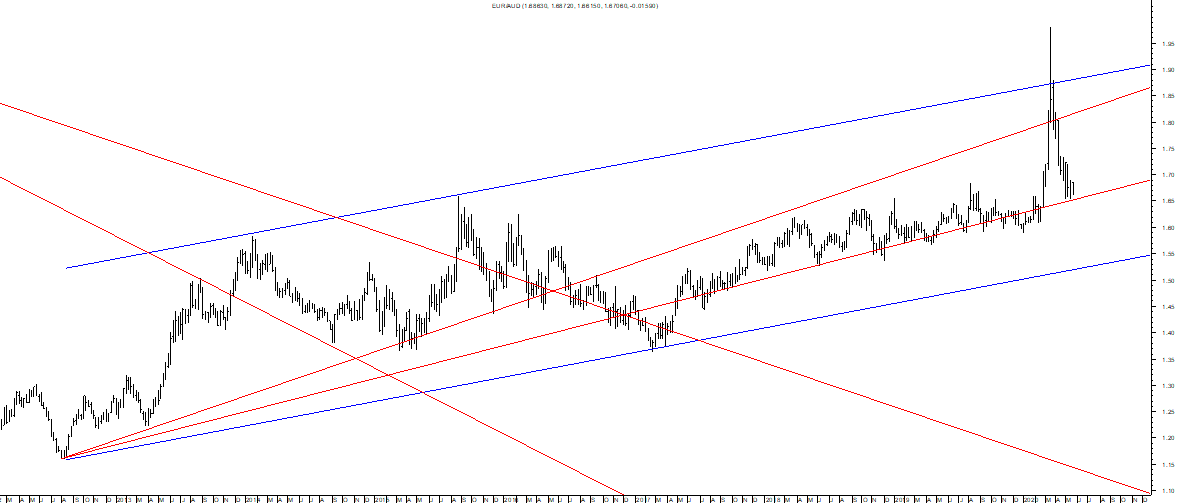 L’eur aud è inserito in un canale ascendente di medio lungo periodo in essere dal mese di agosto 2012 e ha recentemente realizzato un massimo relativo a 1.98 riportandosi cosi in corrispondenza dei livelli di 11 anni fa.