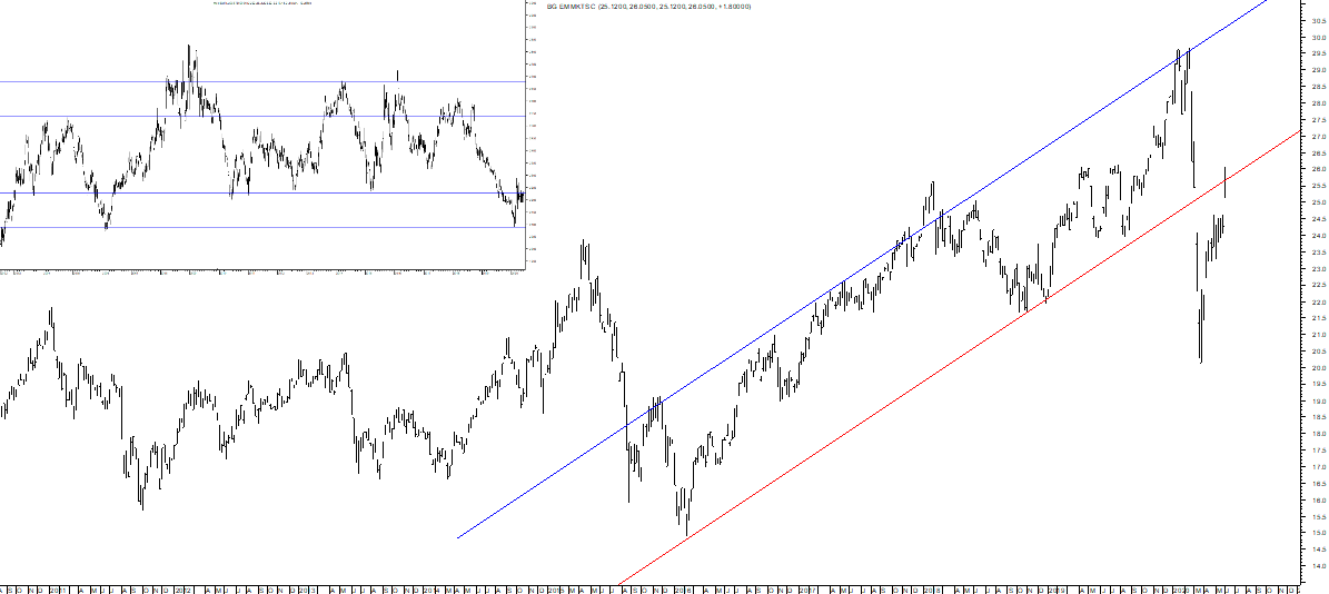 In seguito, il fondo è sceso rapidamente fino a poco più di 20 abbandonando pertanto il canale rialzista sopra menzionato.