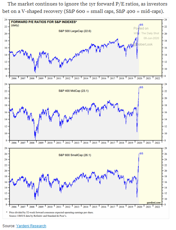 In sintesi se gli analisti oggi si sbagliano e pensano che questa recessione sia uguale a quelle precedenti inevitabilmente vi racconteranno che gli utili saranno bassi e quindi il multiplo, che è un rapporto di quelli che studiavamo alle elementari, sono alti perché alti sono i prezzi che stanno al denominatore. Ma non appena l’aria di bruciato inizia a scomparire ecco che gli earnings magicamente si alzano e tutto il mondo torna a girare a multipli più bassi.