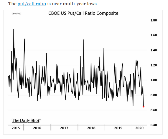 Oppure quella del ratio tra put e call che in questo momento vede predominanti le seconde e quindi l’umore del mercato è pesantemente rialzista: