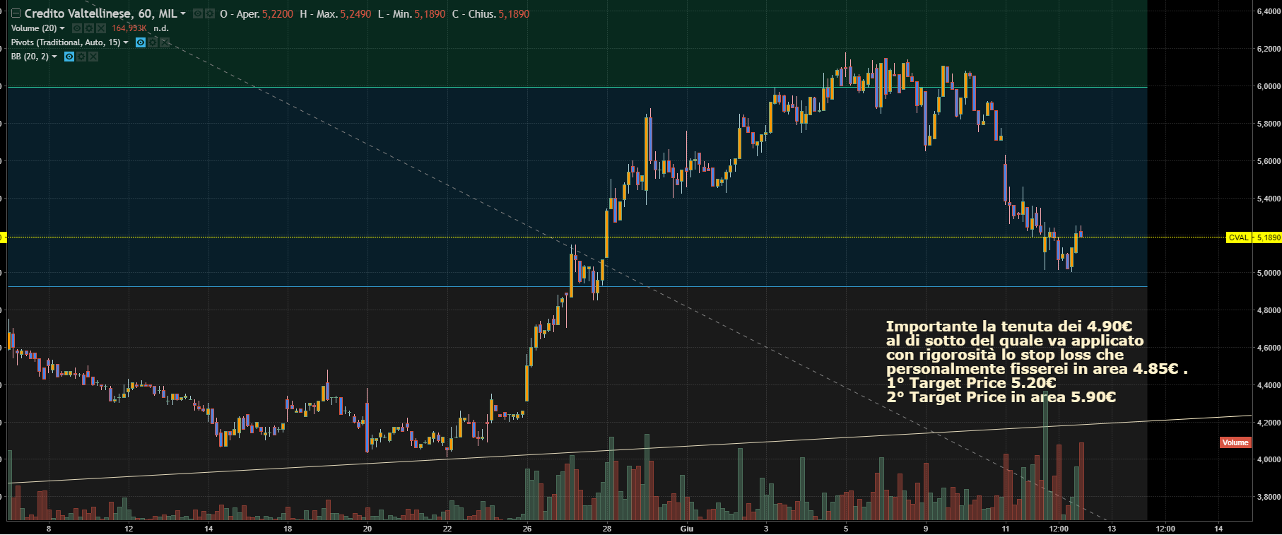 Importantissima la tenuta dell'area 4.90€, perché se rotta proietterebbe le quotazioni in area 4.20€.