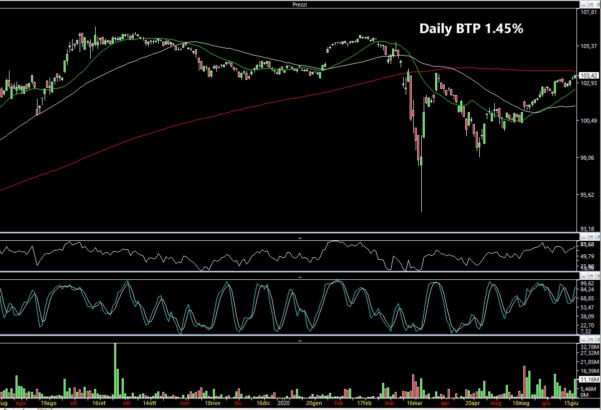 Torno brevemente sul BTP Italia emesso il 26 Maggio c.a. (ISIN: IT0005410912). Avevo indicato inizialmente una prima area target a a 101.50 e poi a 102 che de facto è stata raggiunta (mentre scrivo il max è stato a 101.98). Rimane un PERO' grande come una casa: è completamente scollato rispetto al suo cuginetto, il Btp maggio 2025 1.45% (che ha una cedola dello 0.05% in più rispetto alla nuova emissione) che attualmente quota a 103.4 circa (ISIN: IT0005327306). Una differenza di non poco conto. Lo scollamento a mio modo di vedere può essere dovuto al fatto che la ECB compra BTP ma non BTP Italia ma questo a mio avviso conta poco: se lo Stato fosse inadempiente lo sarebbe indistintamente su tutto il debito emesso. Una ragione più plausibile su questo grosso differenziale tra i due può essere l'ammontare della size emessa e quindi ci sono ancora dei venditori che frenano. Ma naturalmente frenano molto meno che all'inizio (i famosi "briciolai"), del resto sono passate solo tre settimane. Insomma, a ciasuno il proprio gioco. Non sono un "bondista" ma credo fosse giusto ricordare il raggiungimento di questo nuovo target, che comunque rimane ancora estremamente lontano dal suo livello "fair", corretto. A parità di condizioni naturalmente, visto che lo spread si mantiene comunque stabile attorno ai 180/190 bp.
