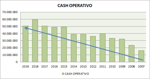 L’espressione della solidità patrimoniale di WINMARK CORP è rappresentato dalla sua posizione finanziaria netta: a fine 2019 le risorse liquide della società ($ 37,9 mln) hanno superato il totale dell’esposizione debitoria (S 31,9 mln).