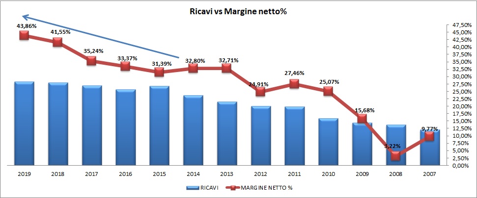 Nel 2019 WINMARK CORP ha realizzato un volume di affari di $ 73,3 mln riportando un utile netto pari a 32,2 mln (43,86%): l’elevato livello della marginalità e la sua traiettoria crescente rappresentano uno straordinario elemento distintivo.