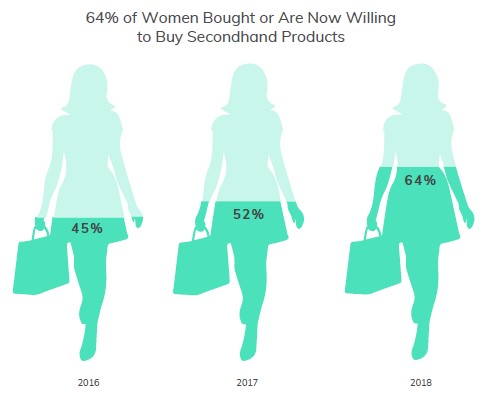 Recenti studi condotti in ambito del segmento resale (vedi https://www.thredup.com/resale?tswc_redir=true) evidenziano una costante espansione del settore: aumenta pertanto la quota dei soggetti disposti a valutare un acquisto di un bene di seconda mano. Nel 2018, il 64% delle donne del campione ha dichiarato di aver acquistato o valutato un acquisto di beni di seconda mano; nel 2016 tale percentuale era del 45%.