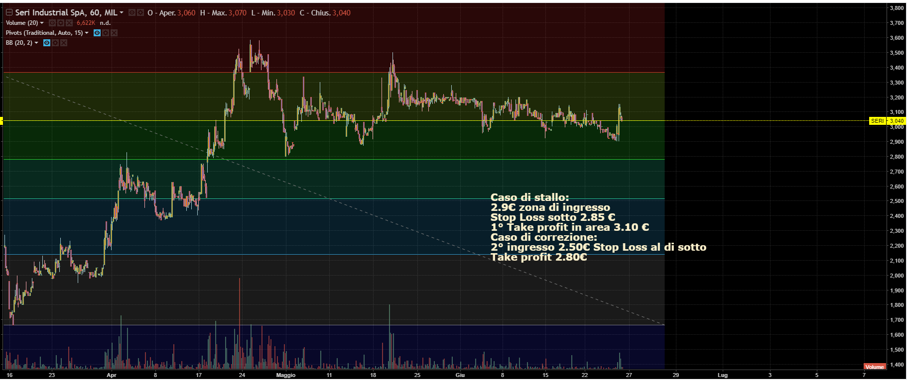 zona di ingresso ipotizzabile in area 2.9€ e stop loss molto stretto.