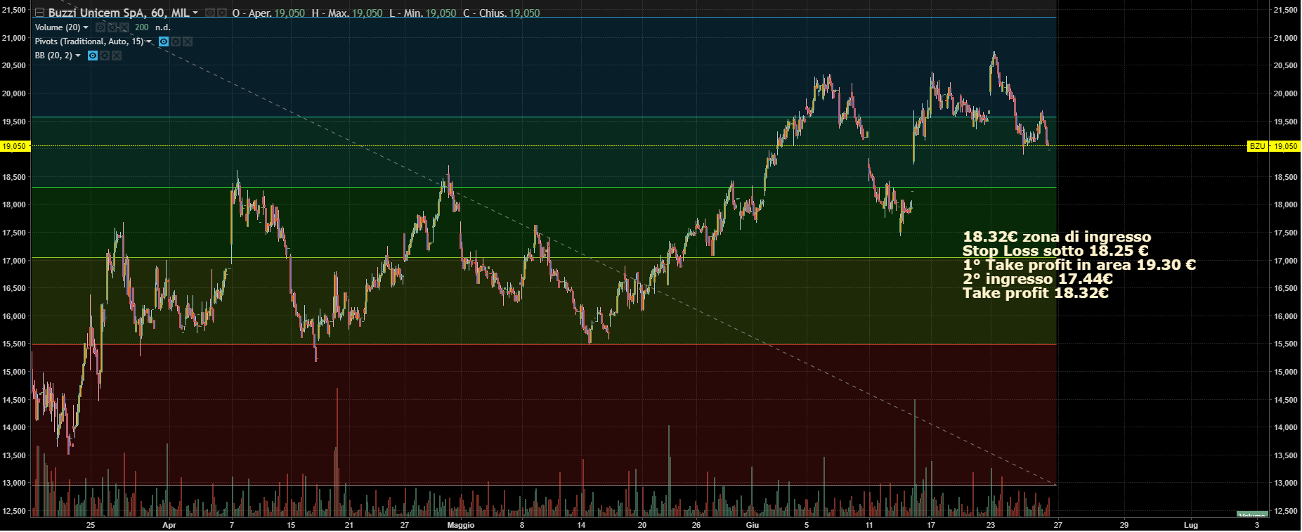 I primo contempla una ulteriore settimana di stasi, con una bassa volatilità in cui è possibile prevedere un ingresso in area 18.30€ con stop loss fissato pochi tick sotto e un take profit in area 19.30€.