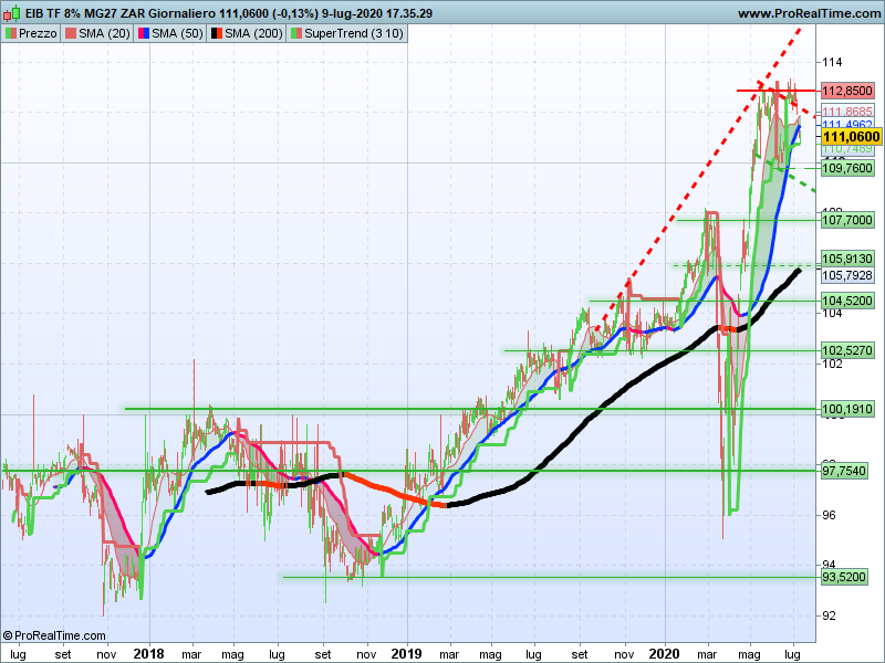 Risulta evidente come l’obbligazionario in Zar sia costoso, sia sulle scadenze corte sia su quelle lunghe. Un caso per tutti, quello relativo al Bei 8% 2027.