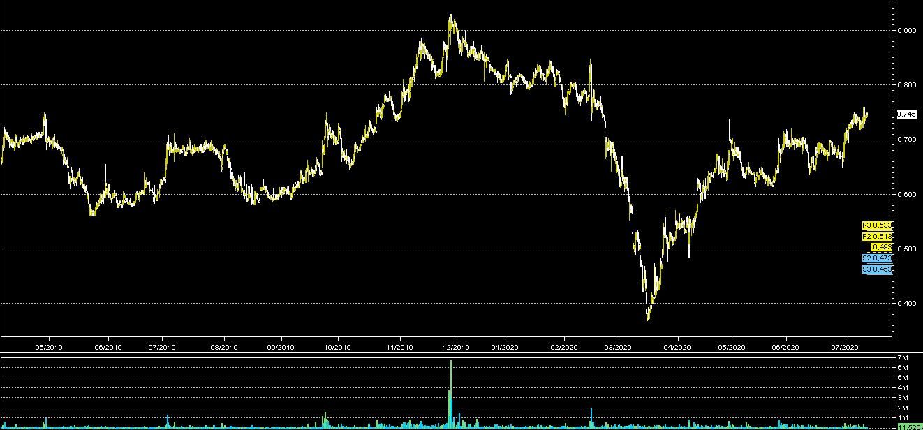 I valori di 0.715€ e 0.69€, rappresentano potenziali livelli di ingresso, con target price potenziale ai 0.8€.