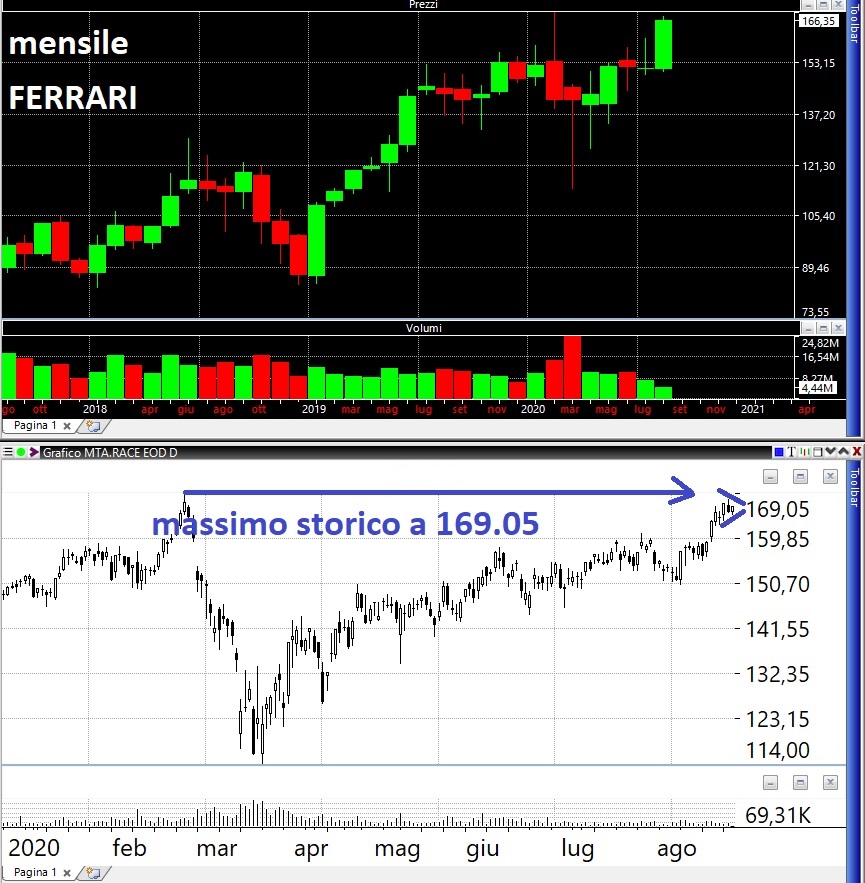 Il dovere ci chiama su Ferrari che si sta affacciando sui massimi storici ed è stato storicamente un titolo che è stato presente nel nostro portafoglio: buy 167.70 stop. Sempre il solito pattern di comprare poco sotto i massimi storici su un uncino / congestione nella speranza che i prezzi vadano a lambire i massimi e noi uscire in target.
